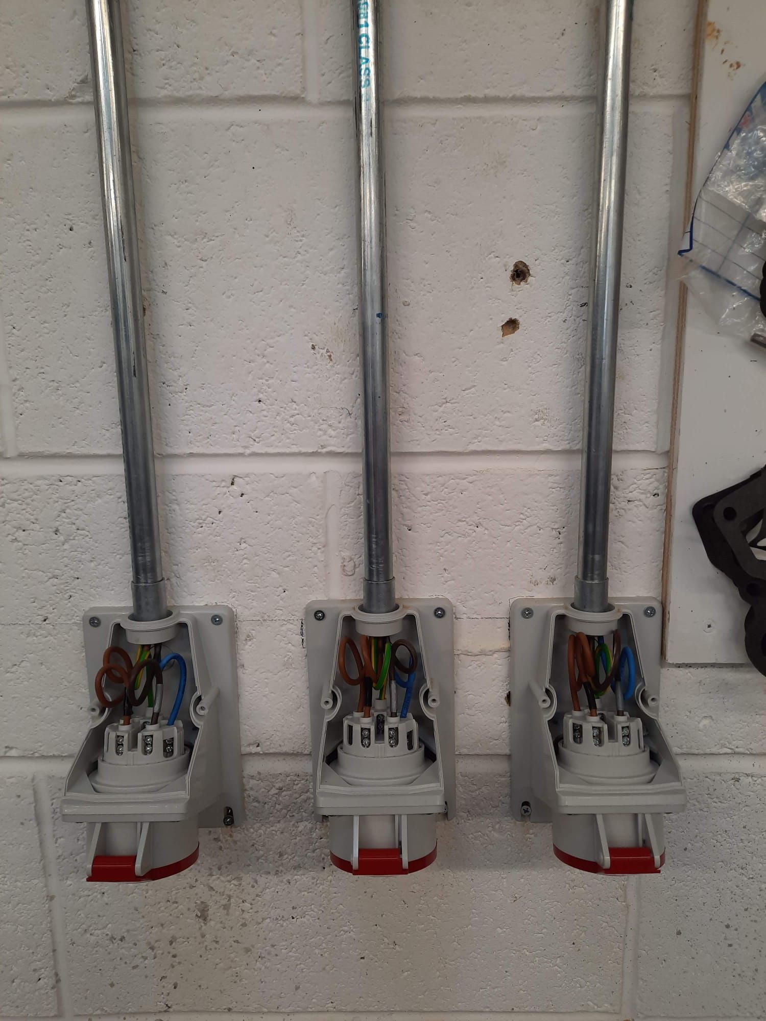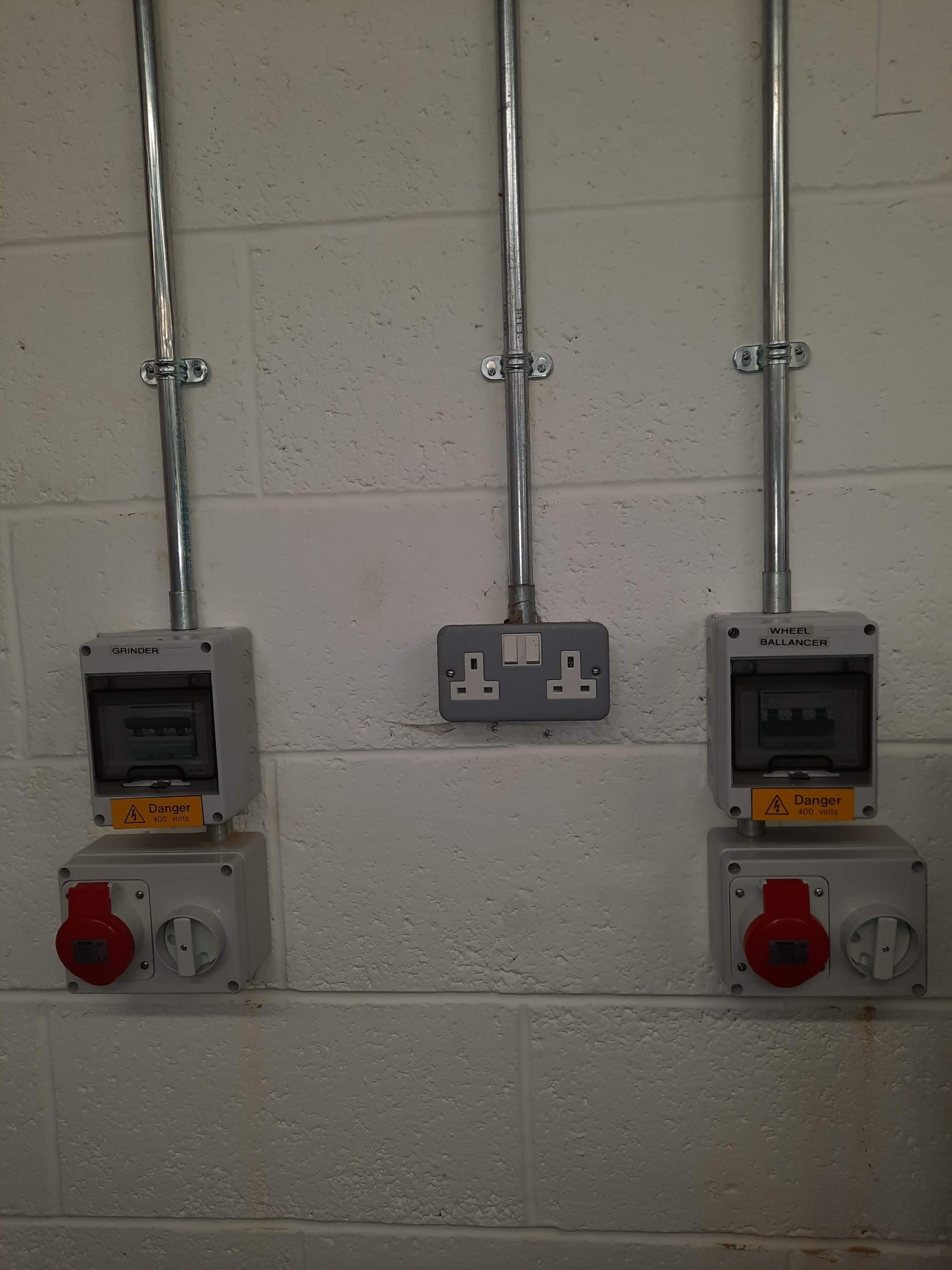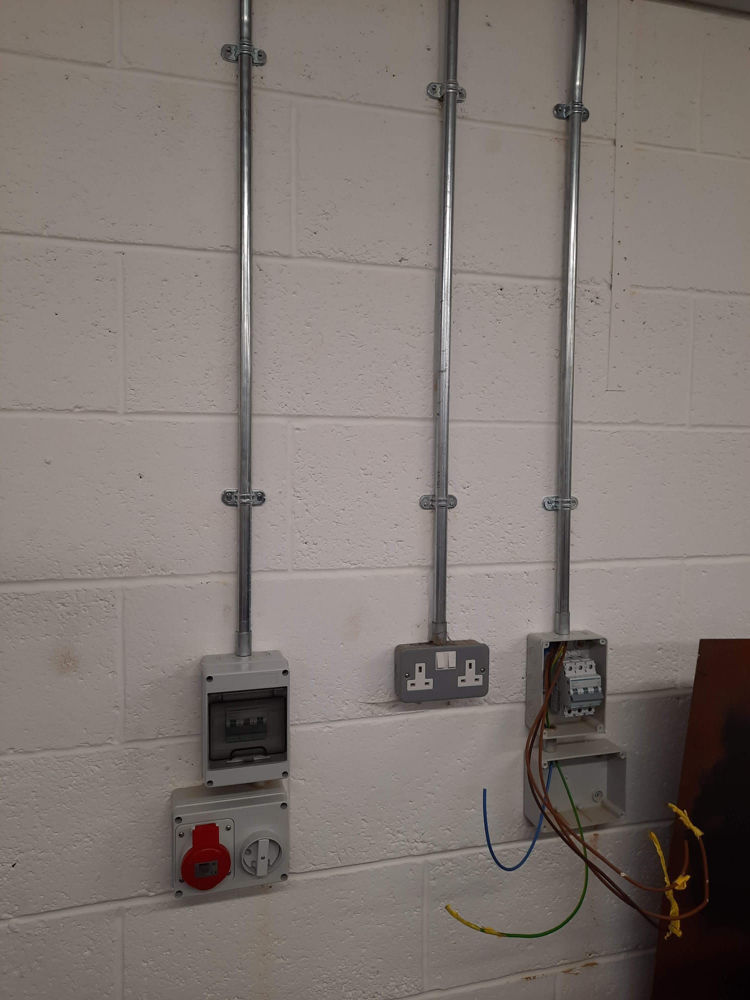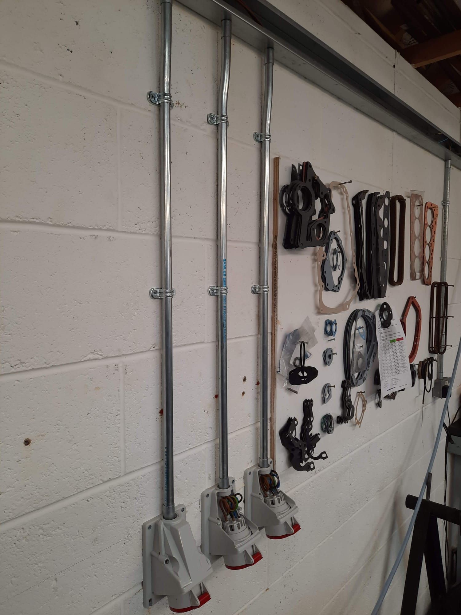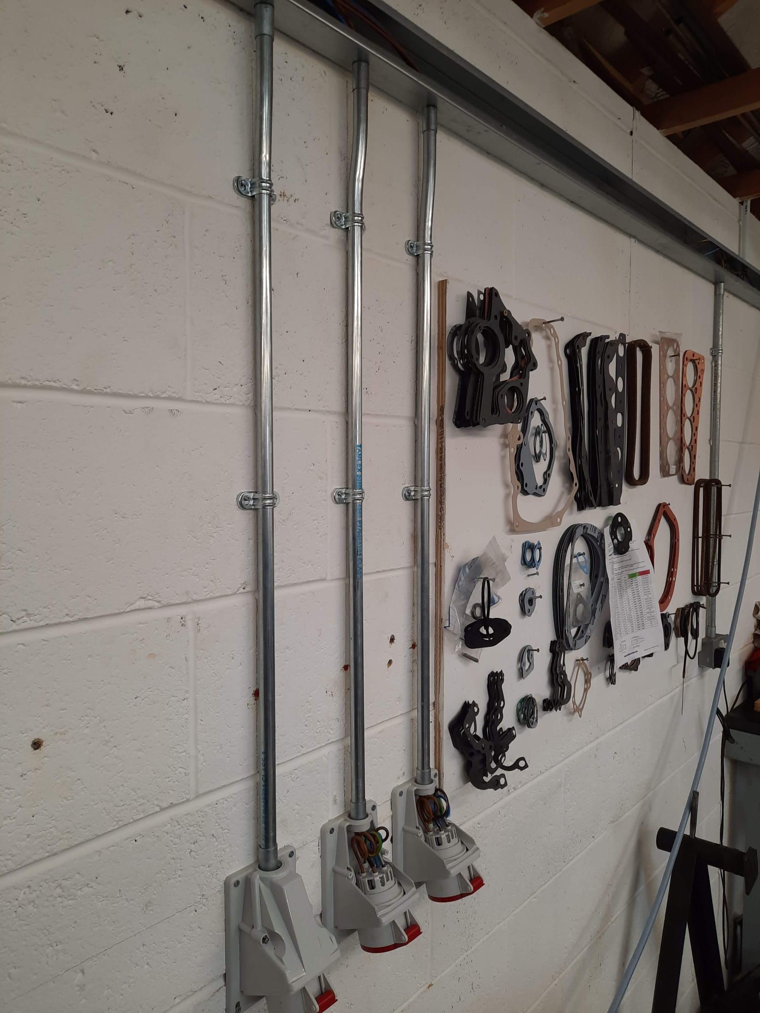 - Wiring and Outlet Installation: To distribute the 3-phase power to the various pieces of equipment, Keith installed 3-phase outlets throughout the workshop. Each piece of equipment was connected via galvanised trunking and 20mm galvanised conduit, ensuring a robust and safe installation.