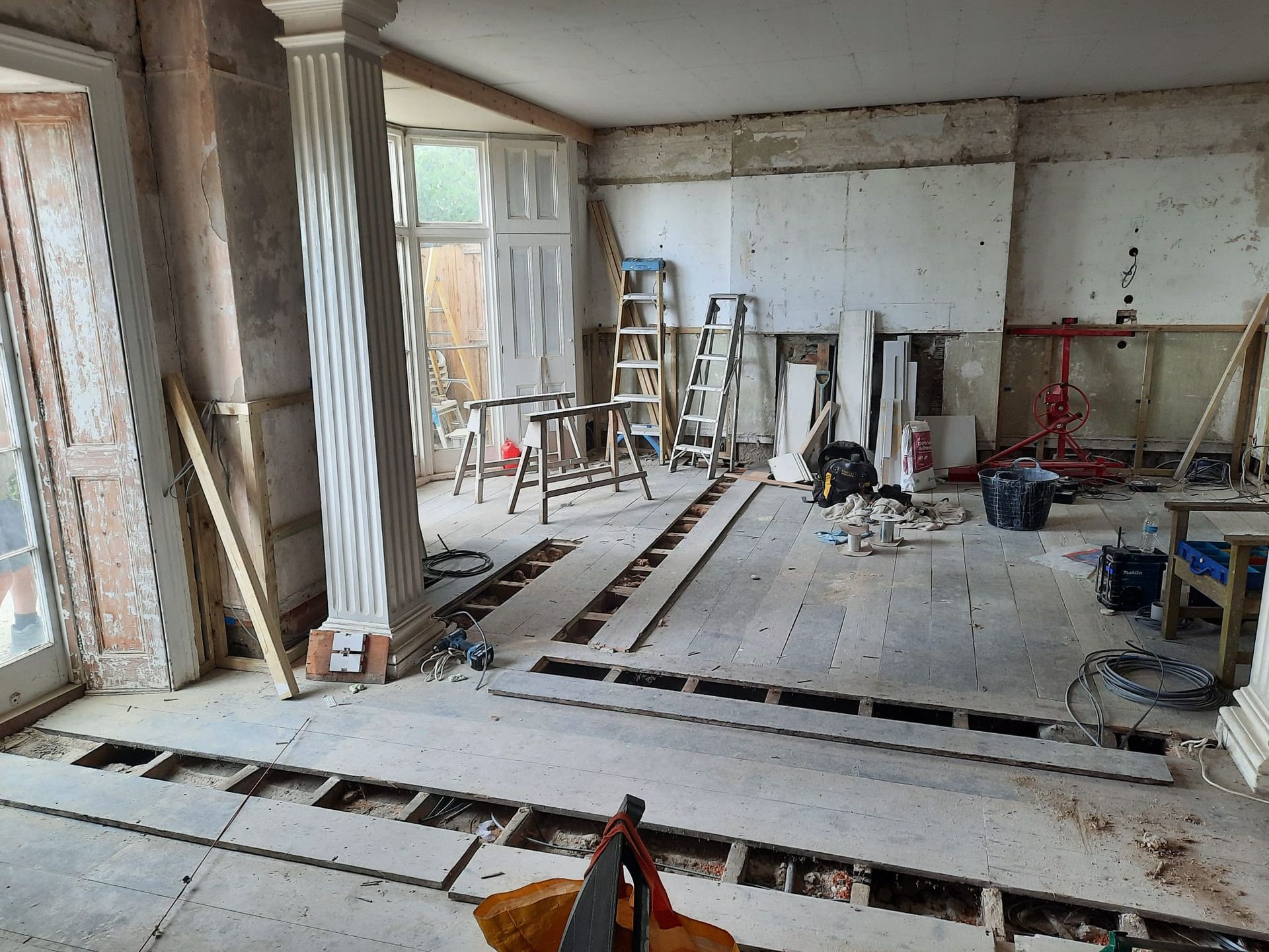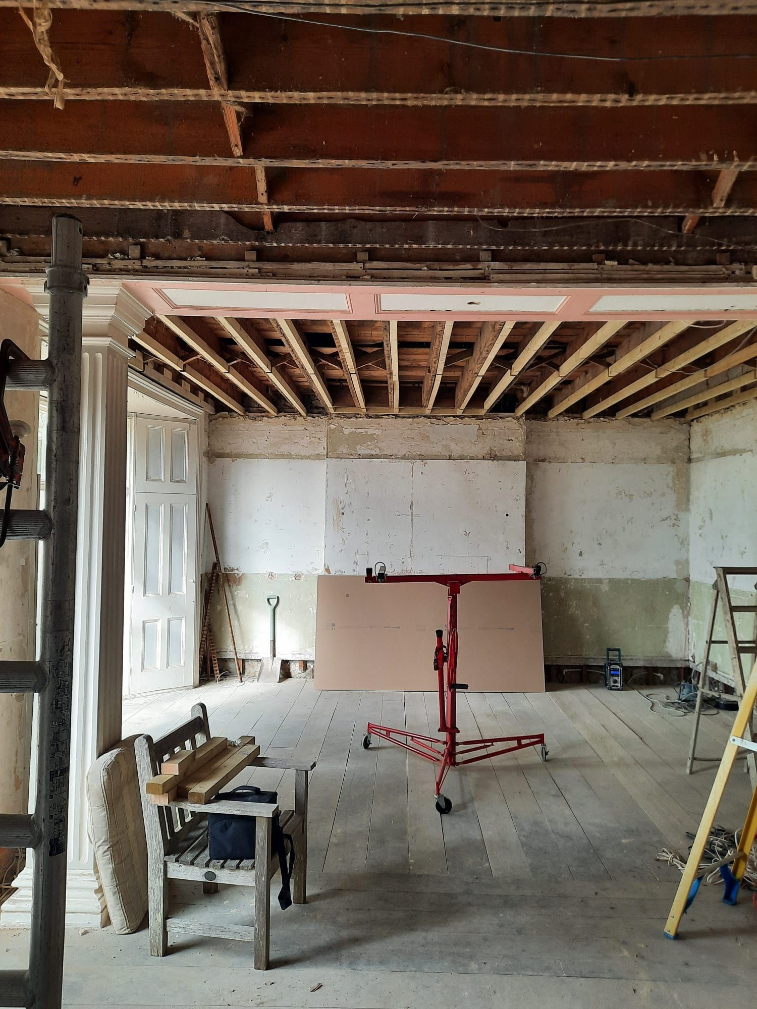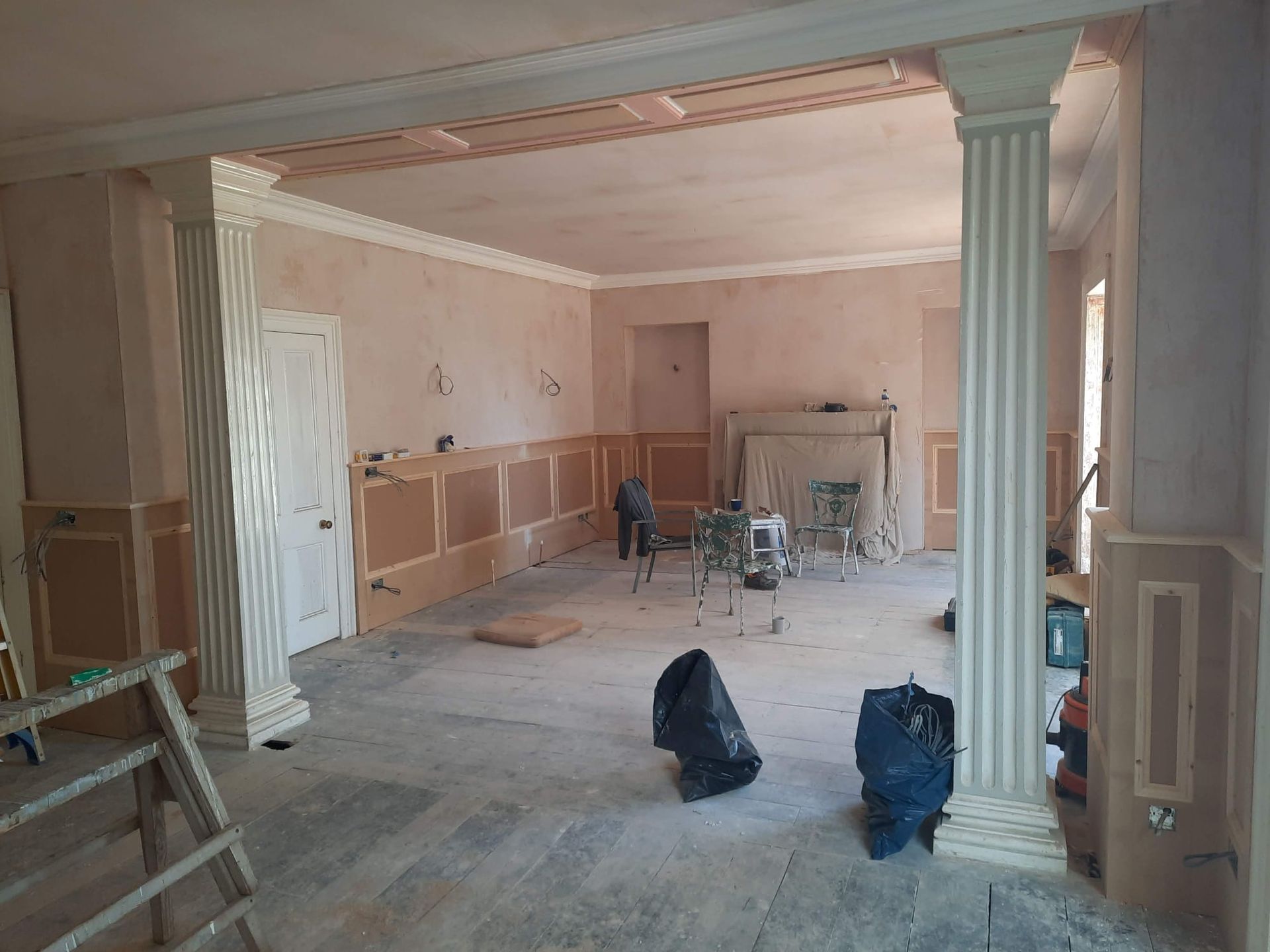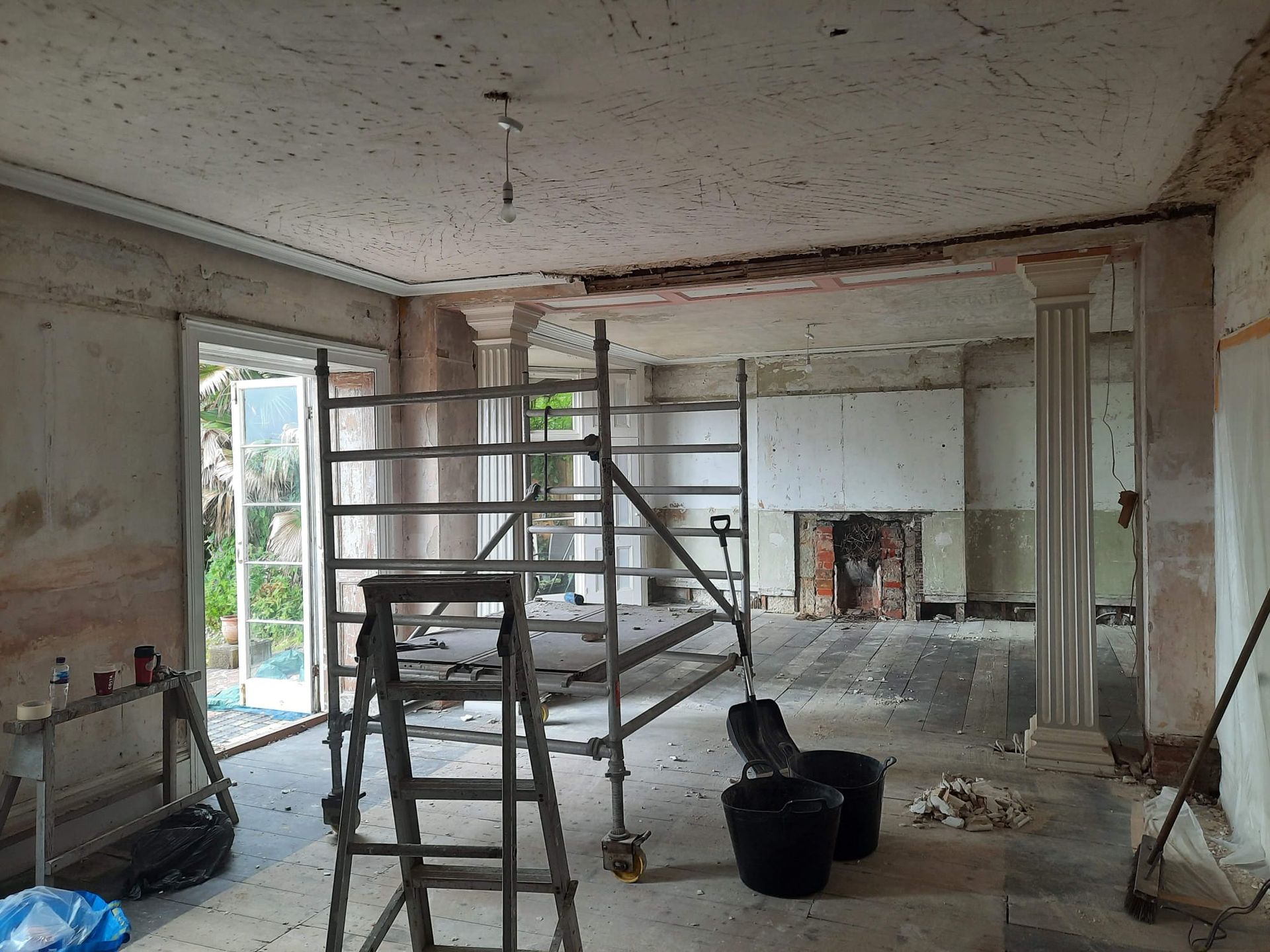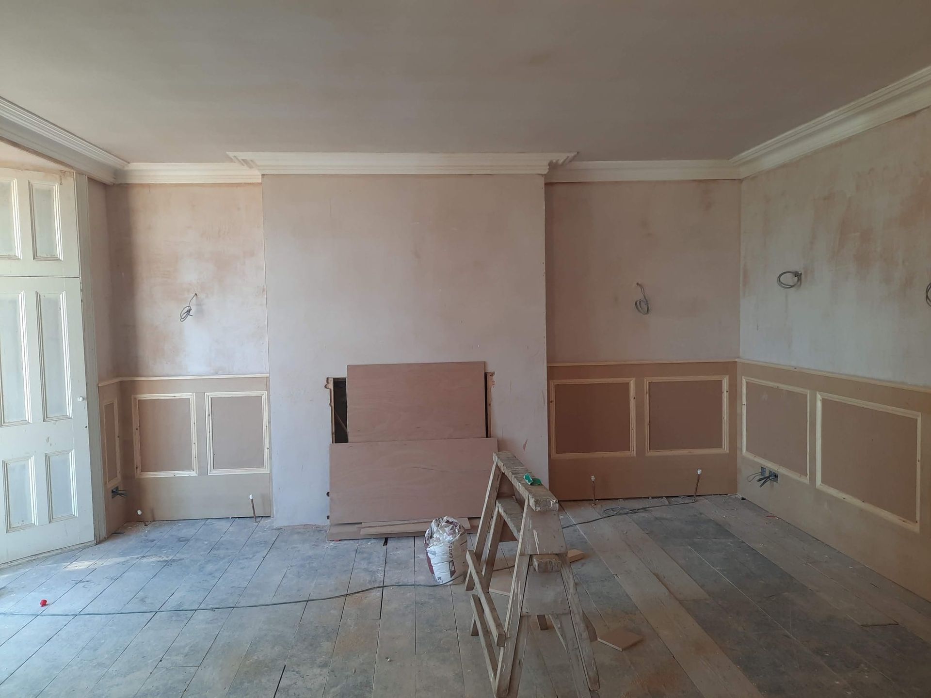 The pictures accompanying this article tell the story of our progress, showcasing the transformation from a neglected space to a beautifully restored drawing room. This project exemplifies our commitment to excellence and our ability to manage complex, multi-skill projects seamlessly.
